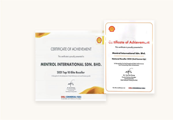 Recognised by Shell Commercial Fuels for outstanding service and sales performance: